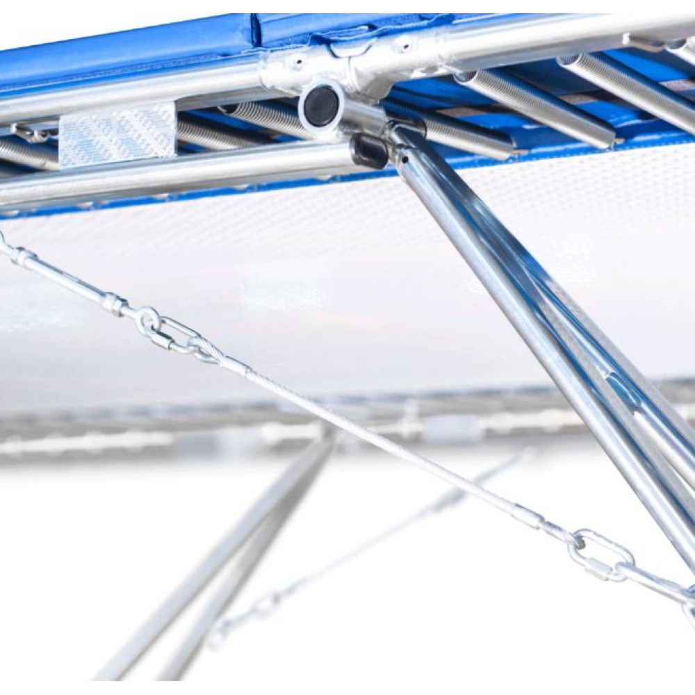 - прыжковое полотно (426 × 213 см), прикрепленное к раме с помощью 110 стандартных пружин и 8 усиленных угловых пружин из закаленной стали;