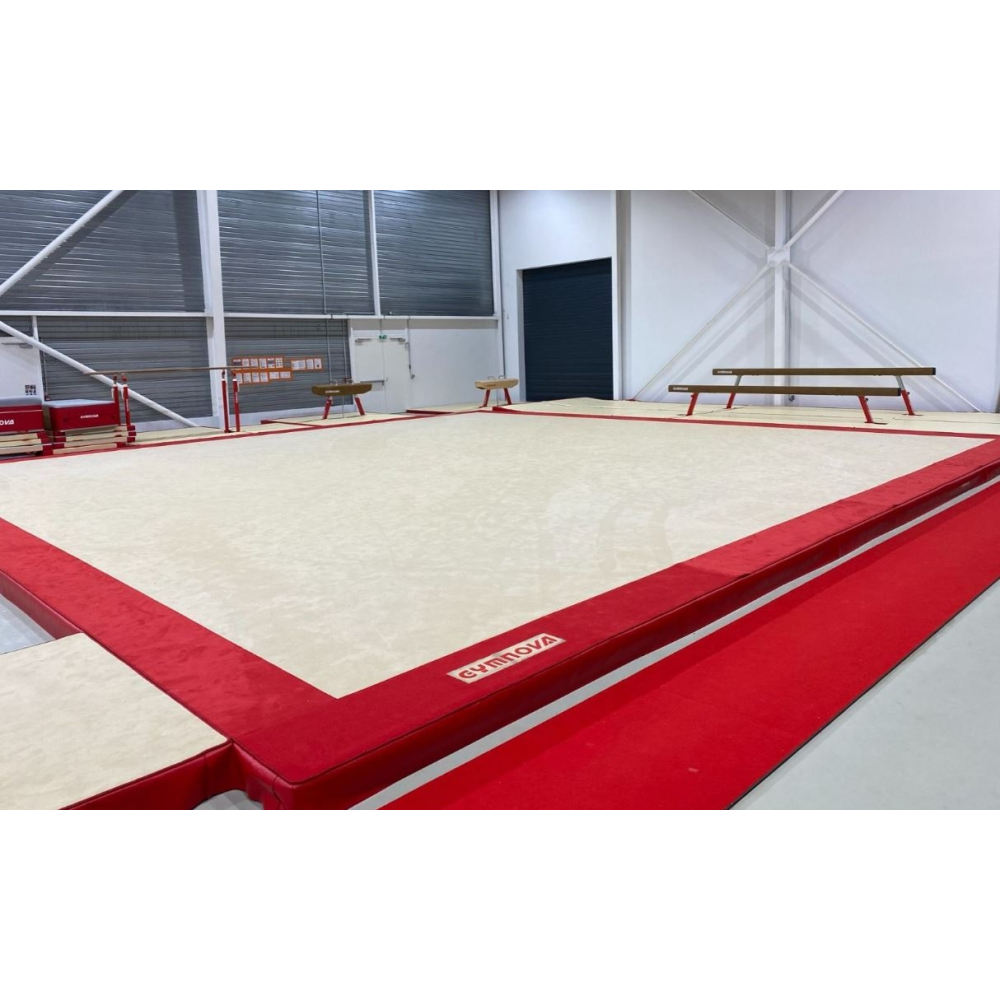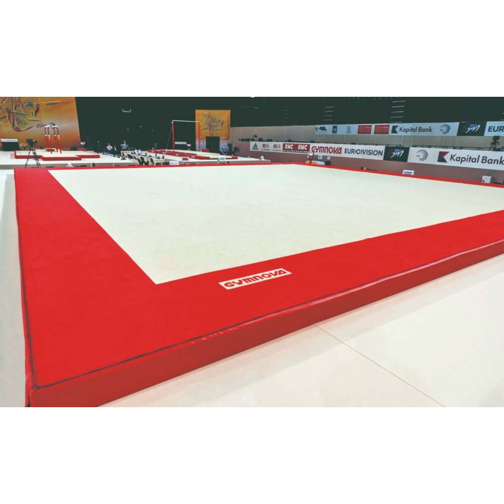 Состоит из полотен, соединенных между собой лентами-липучками, расположенными на внутренней стороне ковролина. Разметка FIG выполнена с использованием контрастной окантовки, а отделка по краям обработана оверлочным швом. Толщина покрытия и основа высокой плотности отвечают за удобство использования. Встроенная противоскользящая система предотвращает смещение ковролина во время его использования. Гимнастическая поверхность: 12 × 12 м.