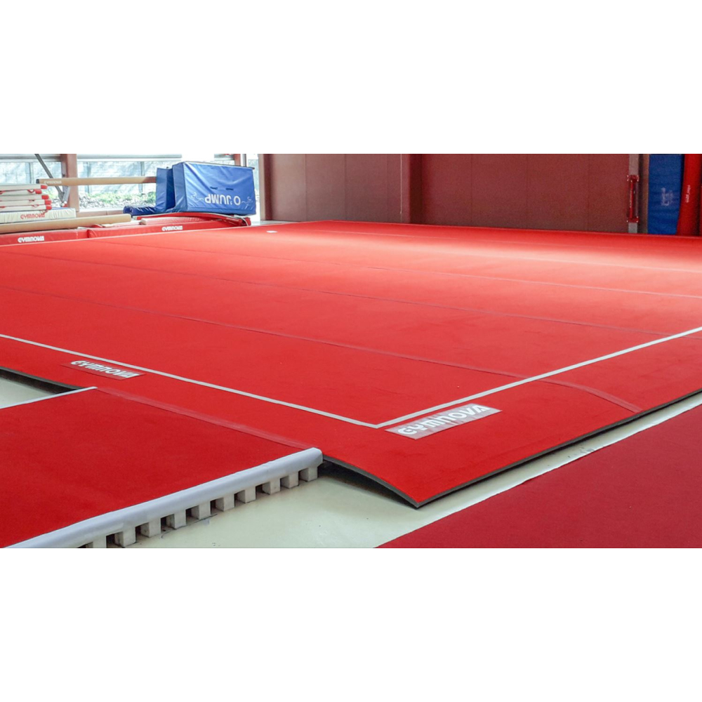 Эта недорогая модель, идеально подходящая для тренировок, состоит из динамического настила (арт. 6580) и семи рулонных дорожек с эффектом «фламме» (арт. 6160 либо арт. 6165) толщиной 40 мм, соединенных между собой лентами-липучками. Рабочая зона 12 × 12 м обозначена лентами-липучками шириной 5 см. Поставляется с противоскользящими системами. Толщина: 14 см (настил 10 см + дорожка 4 см).