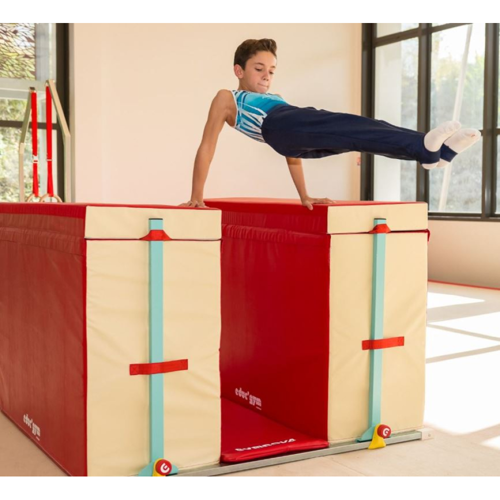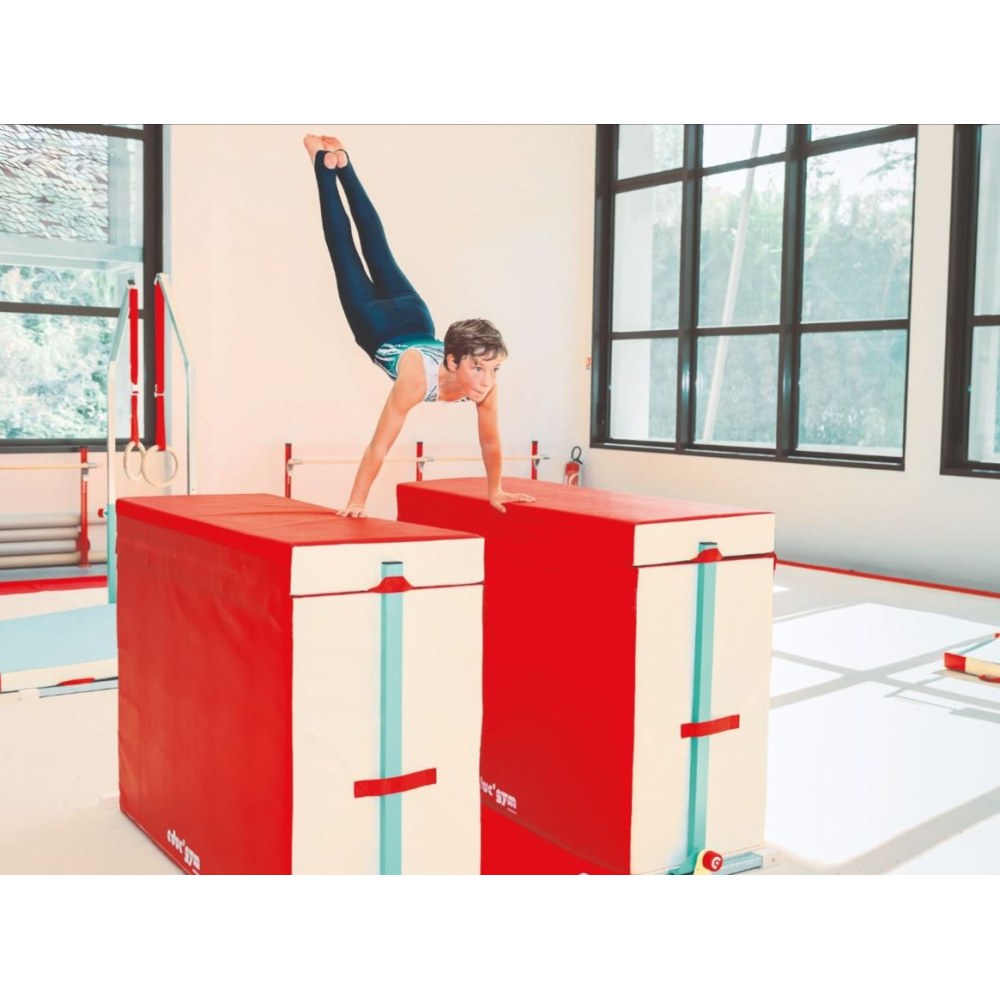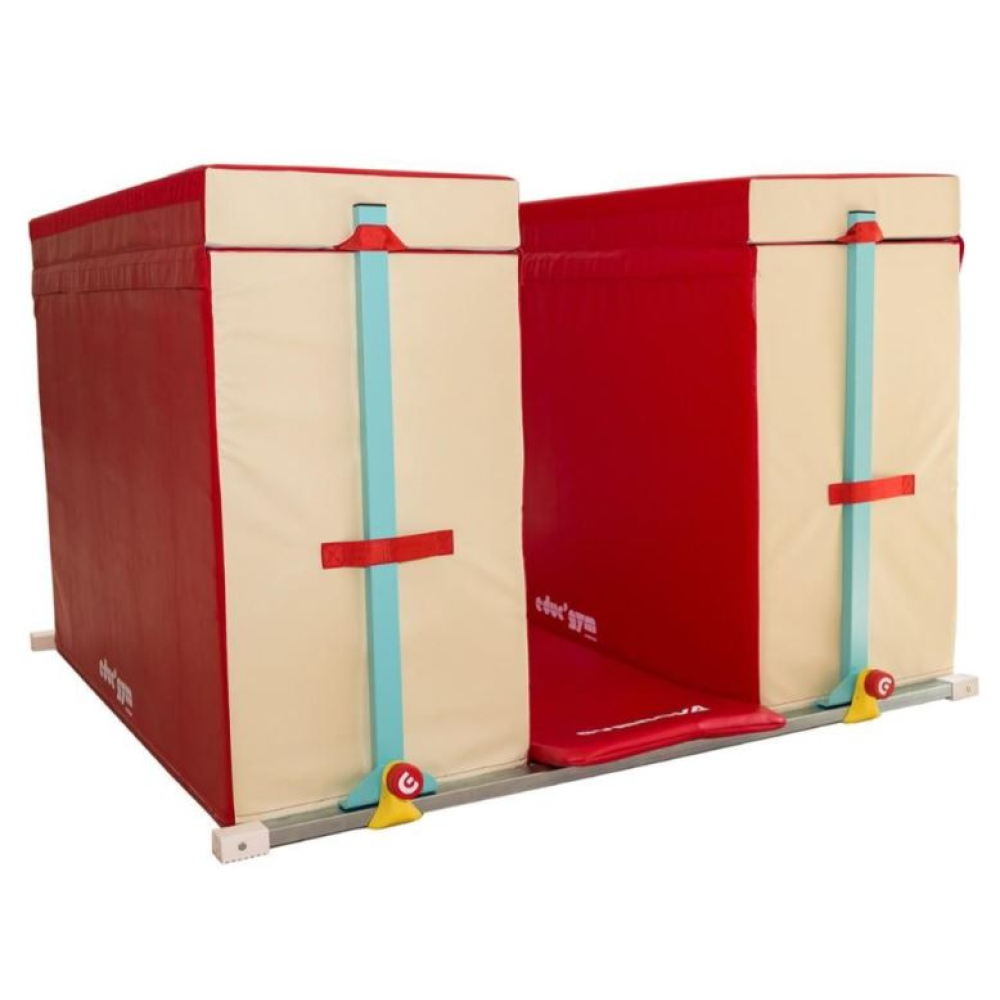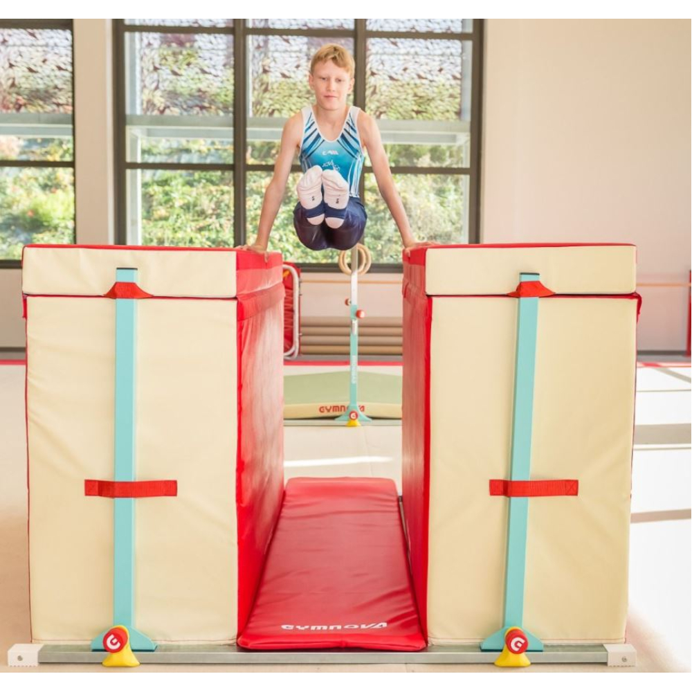 Амортизирующий и устойчивый пеноматериал, обеспечивающий надежную опору, максимально приближен к реальным параллельным брусьям. Расстояние между жердями регулируется до 64 см. Занимаемая площадь: 180 × 160 см (д × ш). Модули можно использовать отдельно при обустройстве тренировочных обучающих залов, но рекомендуется обязательно использовать параллельные брусья с верхними модулями.
