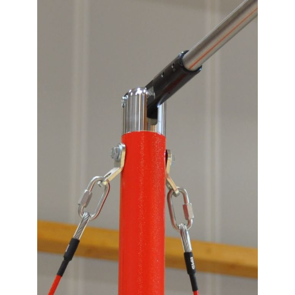 Перекладины для соревнований London оснащены стальными поворотными головками из цельной заготовки. Две оси вращения служат для создания эффекта «карданного подвеса» для плавной работы без рывков. Устройства быстрого натяжения натяжителей позволяют мгновенно выполнять монтаж и демонтаж. Для обеспечения устойчивости, конструкция оснащена противоскользящими накладками и тросами растяжки с оплеткой. Регулируемая высота: от 2,70 до 2,95 м. Диаметр стоек: 70 мм