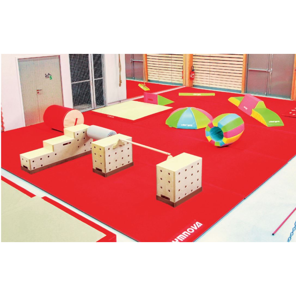 Пружинный гимнастический помост 14х14 (без настила) состоит из семи рулонных дорожек с эффектом «фламме» (арт. 6160 либо арт. 6165), толщиной 40 мм. Рулонные дорожки соединяются между собой лентами-липучками.