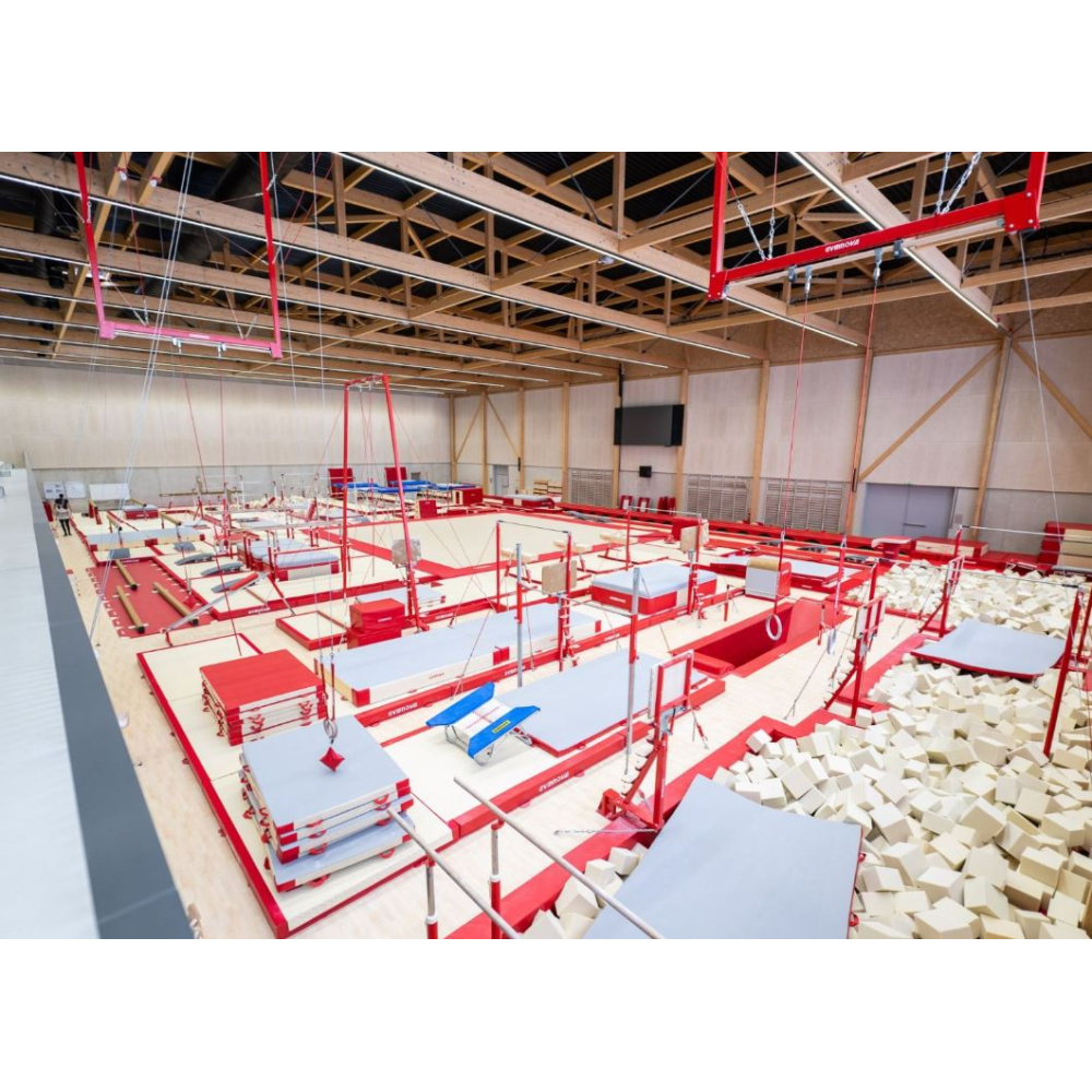Амортизирует ударную нагрузку, тем самым снижая уровень усталости и вероятность получения спортсменами микротравм. Размеры: 217 × 50 см (Д×Ш). Ее форма и отсутствие рамы позволяют экономить место для приземления. Таким образом, гимнасты могут тренироваться в полной безопасности, используя максимальное пространство для отработки упражнений. Регулируемая по высоте и гибкости, эта рама поглощает удары, снижая риск микротравм и усталости. Крепление к потолку или каркасу требует детального чертежа каркаса. Однако крепление гарантирует оптимальную безопасность и поддержку во время выполнения гимнастических упражнений. Крепление осуществляется с помощью химических анкеров