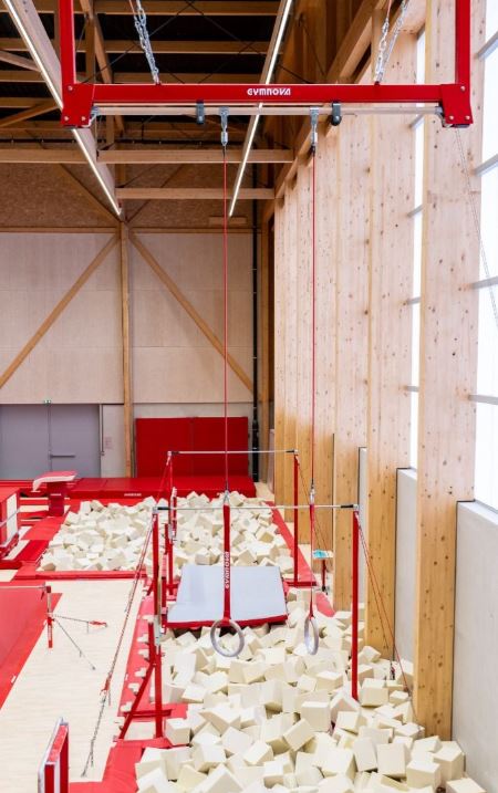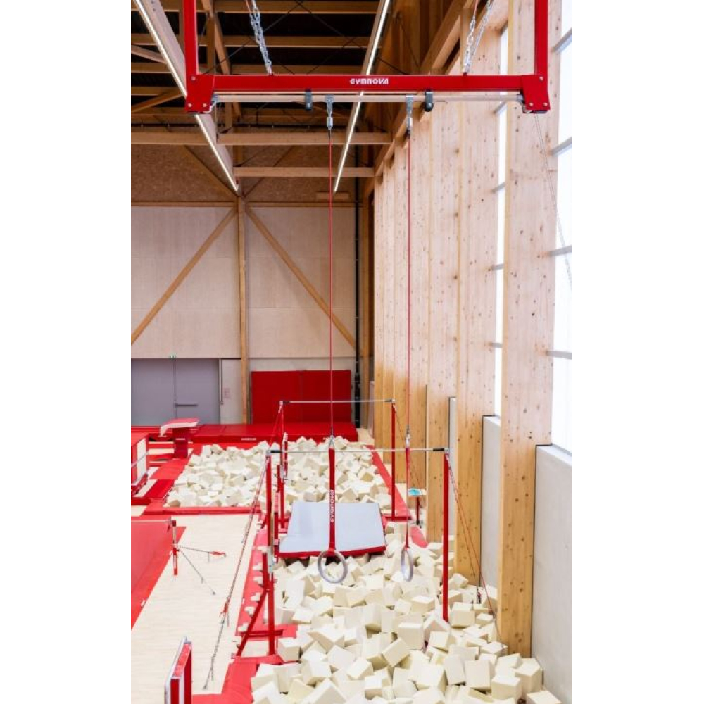Рама идеально подходят для тренировок, так как в отличие от соревновательных рам занимает меньше места в гимнастических залах. Они крепятся к потолку или каркасу и гарантируют безопасность и оптимальную устойчивость во время отработки гимнастических элементов.