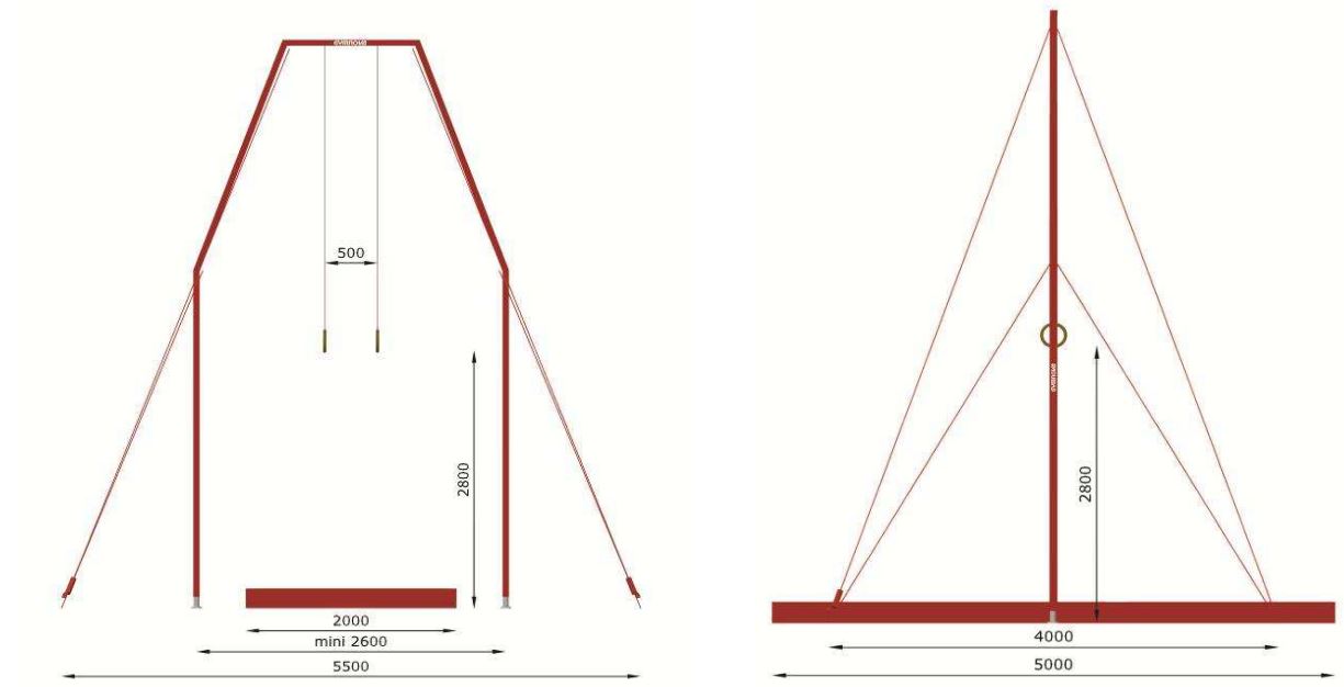 Расширяющаяся форма рамки позволяет освободить пространство в зоне приземления, обеспечивая максимальную безопасность во время соскоков. Рама легко регулируется по росту спортсмена. Высоту можно легко проверить по гравировке на направляющей. Рама квадратного сечения оснащена двойной системой растяжек с оплеткой для мгновенного монтажа и демонтажа с помощью системы быстрого натяжения. Общая высота рамы: 5,90 м.