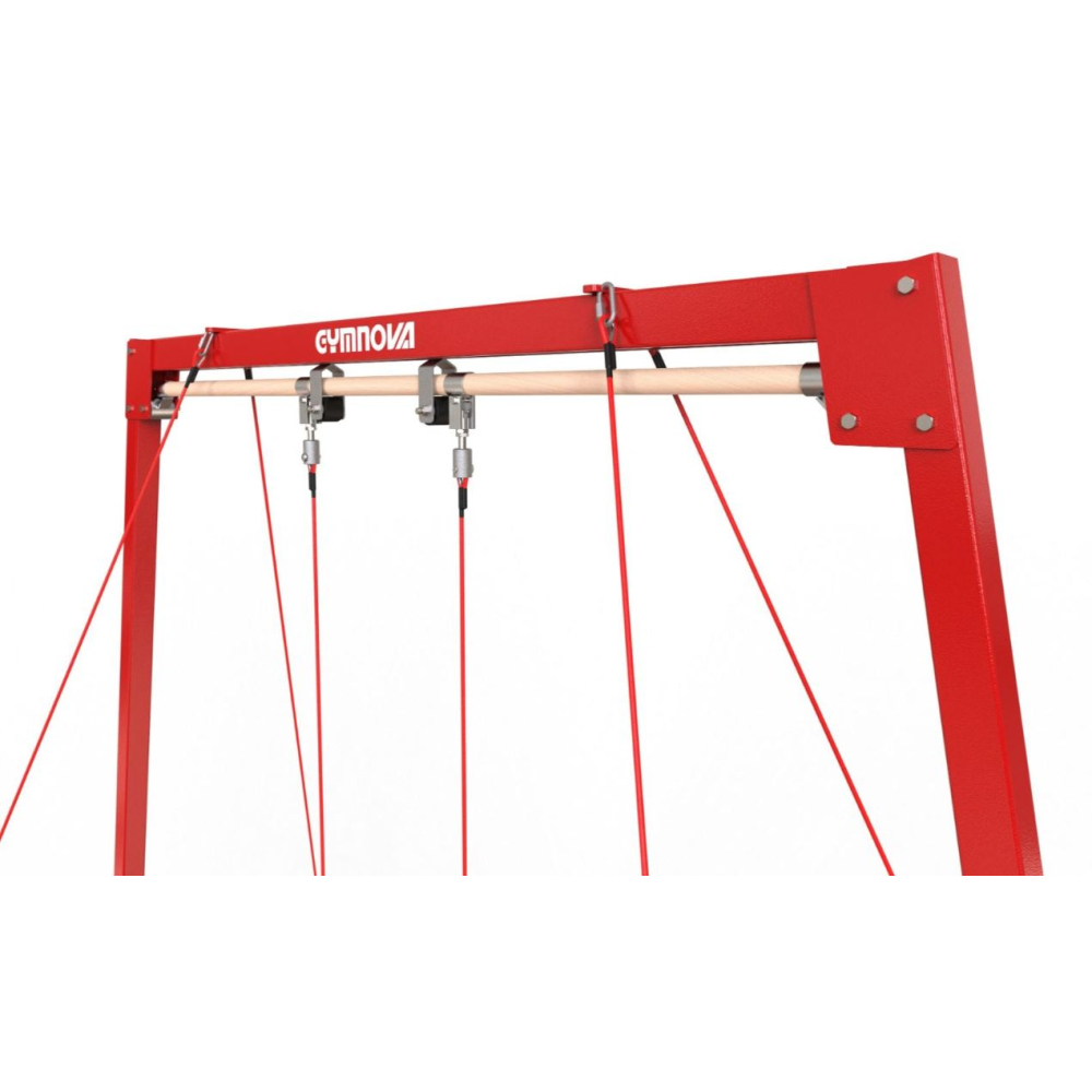 Гибкая подвесная планка позволяет адаптировать её к технике и размеру каждого гимнаста для достижения оптимальных ощущений. Высокий уровень амортизации позволяет повторять упражнения, значительно снижая усталость и риск растяжений. Расширенная форма рамы позволяет освободить зону приземления, что обеспечивает максимальную безопасность при соскоке. Регулировка высоты выполняется без труда на уровне роста спортсмена за счет меток, нанесенных непосредственно на направляющих.