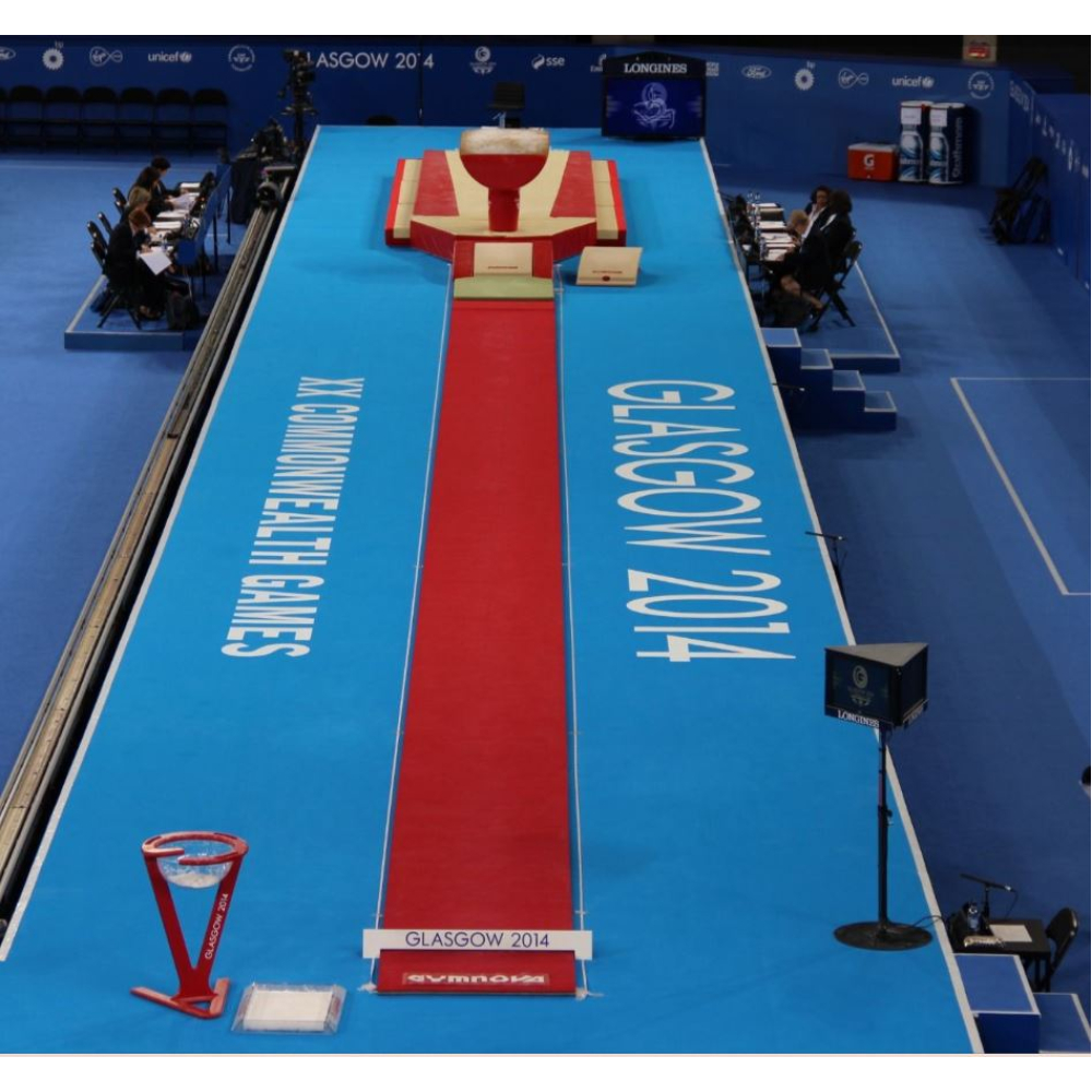 Выполнена из динамического пеноматариала, покрытого ковролином с эффектом «фламме», с противоскользящим основанием. Размеры: 25 × 1 м, толщина: 25 мм.