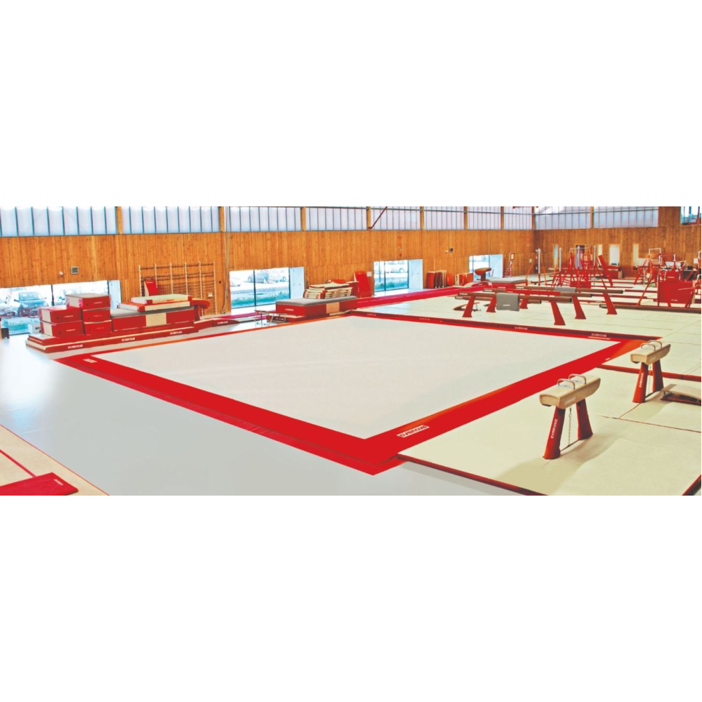 Гимнастическое ковролиновое покрытие: 14 × 14 м.