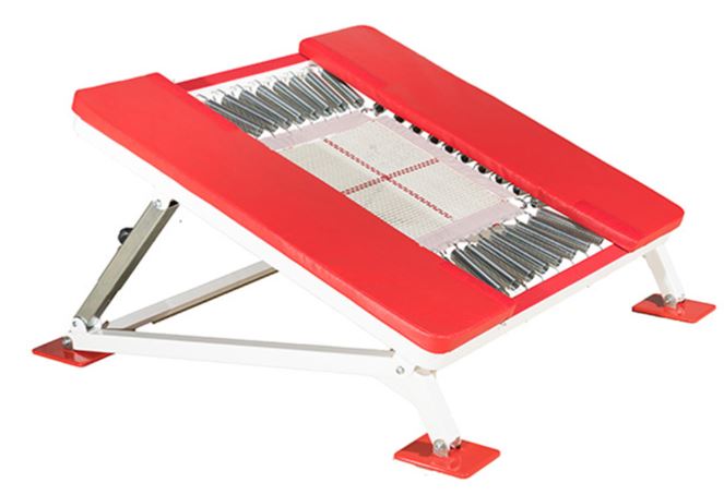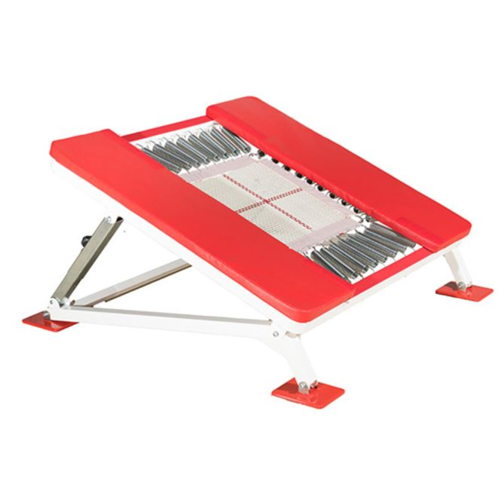 Батут TEAM-GYM предназначенный для изучения и отработки прыжковых упражнений, этот батут, специально разработан для тренировок, дает гимнастам значительный прирост мощности и позволяет безопасно отрабатывать элементы. Перемещается благодаря встроенным колесикам и регулируется по высоте от 65 см до 80 см с шагом 5 см в соответствии с требованиями UEG.