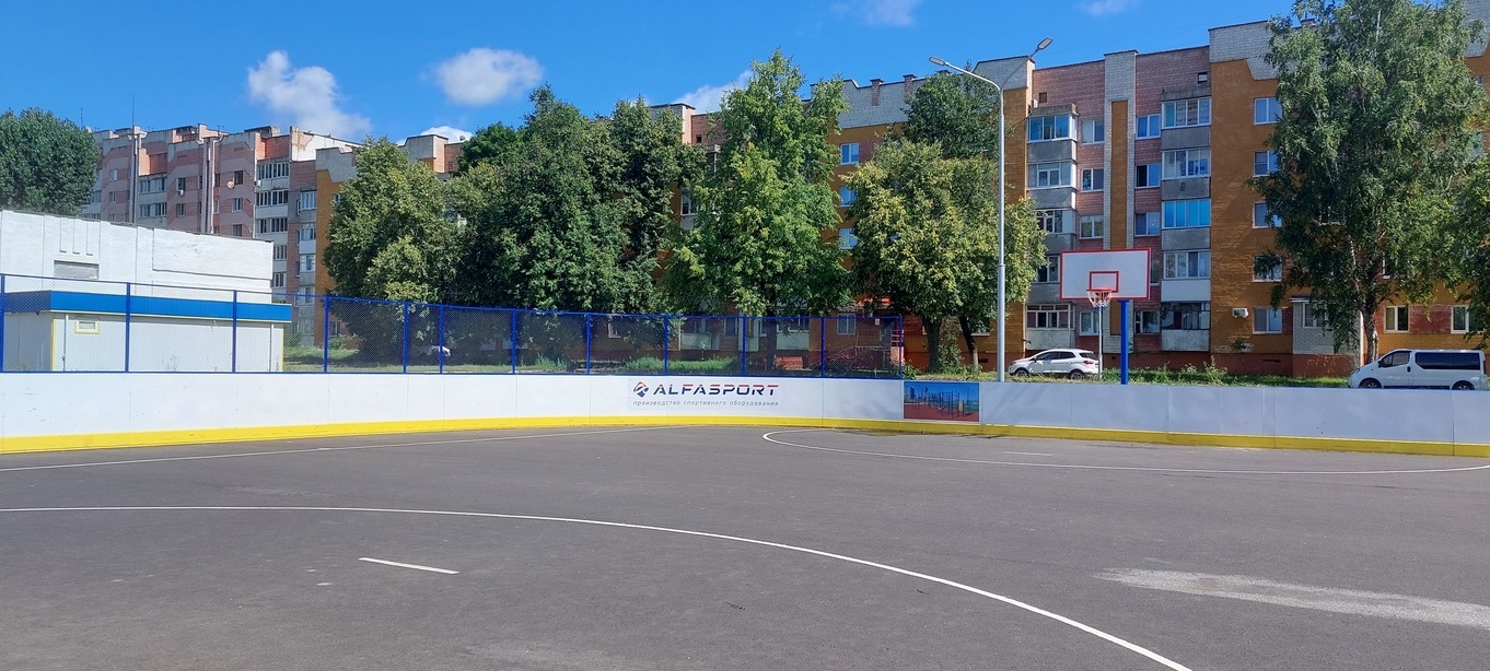 Комплект хоккейного борта в собранном виде используется в качестве уличной спортивной площадки с внутренним размером 30×60 м и радиусами закруглений R – 7,5м для проведения соревнований и тренировочных занятий по хоккею с шайбой и фигурному катанию.