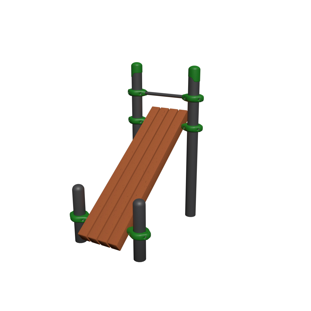 Скамья для пресса наклонная предназначена для выполнения физических упражнений с целью укрепления мышц живота, спины и ягодиц, а также для сжигания жира в области талии и бёдер. В комплект входит 4 опорных столба диаметром 108 мм, 6 алюминиевых хомутов, 4 деревянных бруса.